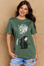 Pattern type: Graphic Style: Casual Features: Basic style Neckline: Round neck Length: Long Sleeve length: Short sleeves Sleeve type: Regular sleeves Sheer: Opaque Material composition: 100% cotton Stretch: Slightly stretchy Care instructions: Hand wash cold....
