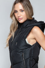 Step up your outerwear game with this zip-up quilted hooded vest. The quilted detailing adds a touch of texture and style to your look while keeping you warm and cozy. The hood provides extra coverage and protection against the cold wind. This versatile vest is perfect for layering over your favorite tops for a trendy and practical outfit. The zip-up feature ensures easy wear and allows you to adjust your comfort level. Whether you're heading out for a casual day or a brisk outdoor adventure, this quilted hooded vest is a must-have addition to your wardrobe.