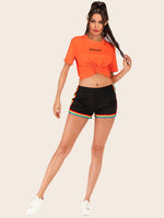 Sizing category: Regular Pattern type: Graphic Style: Casual, chic Features: Basic style Neckline: Round neck Length: Regular Sleeve length: Short sleeves Sleeve type: Regular sleeves Material: 95% polyester, 5% spandex Stretch: Moderate stretch Sheer: No...
