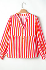 Striped Notched Flounce Sleeve Blouse