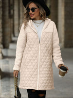 Texture Zip Up Long Sleeve Hooded Coat