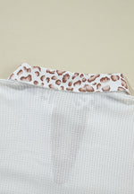Waffle-Knit Leopard Johnny Collar Long Sleeve Top
