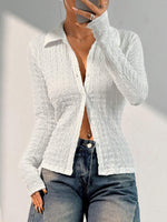 Wrinkled Collared Neck Long Sleeve Shirt
